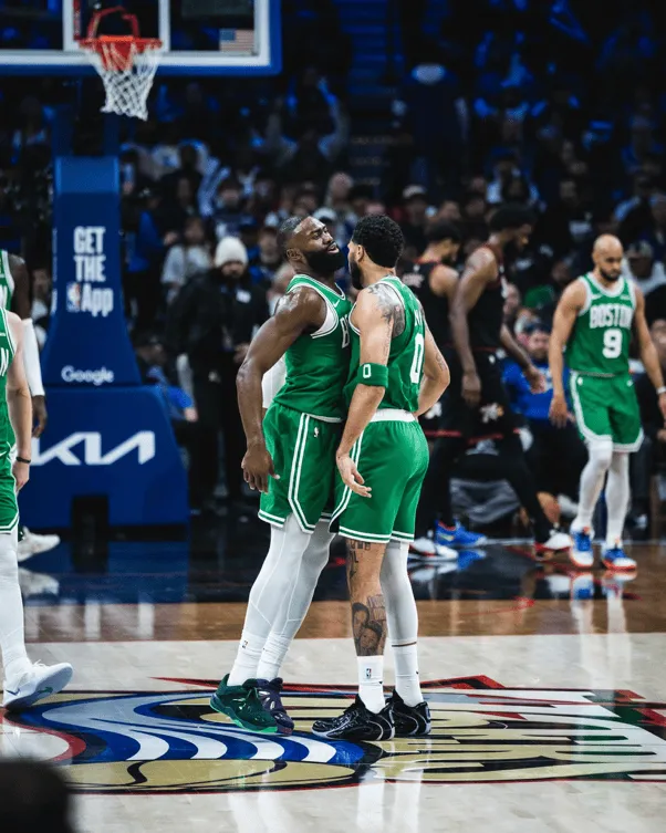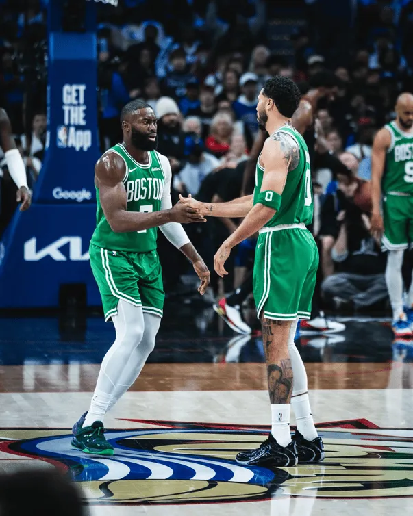 凯尔特人官方更新了X,晒出布朗&塔图姆赛场照与球迷分享。