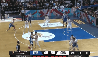 半场结束前最后一攻,焦泊乔抢到后场篮板,但他太急于快攻,传球失误被中国台北男篮断下,刘铮三分线外两步接球转身跳投一气呵成,中国台北男篮靠着这个三分51比50反超中国男篮结束半场。
